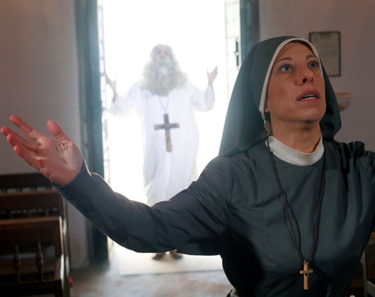 Enrique, disfrazado de Dios, aconseja a Berta que vuelva a Montepinar